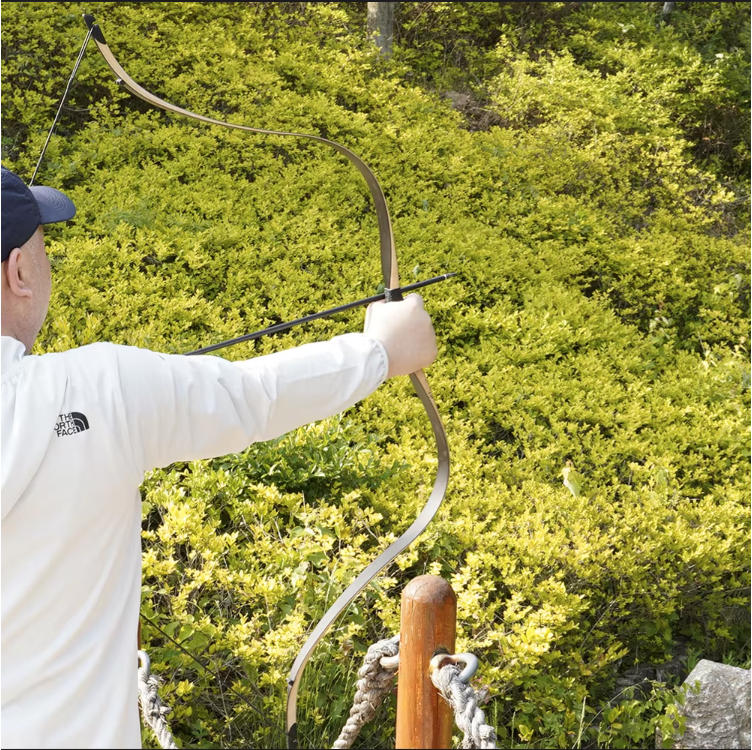 - The bow handle is made of wood, which is strong, durable and quite beautiful. It is wrapped with cow leather on the outside, which makes it comfortable to hold. The limb is laminated by glass fiber and bamboo with better rebound effect and faster arrow speed. The bow body is even lighter, only 400g.