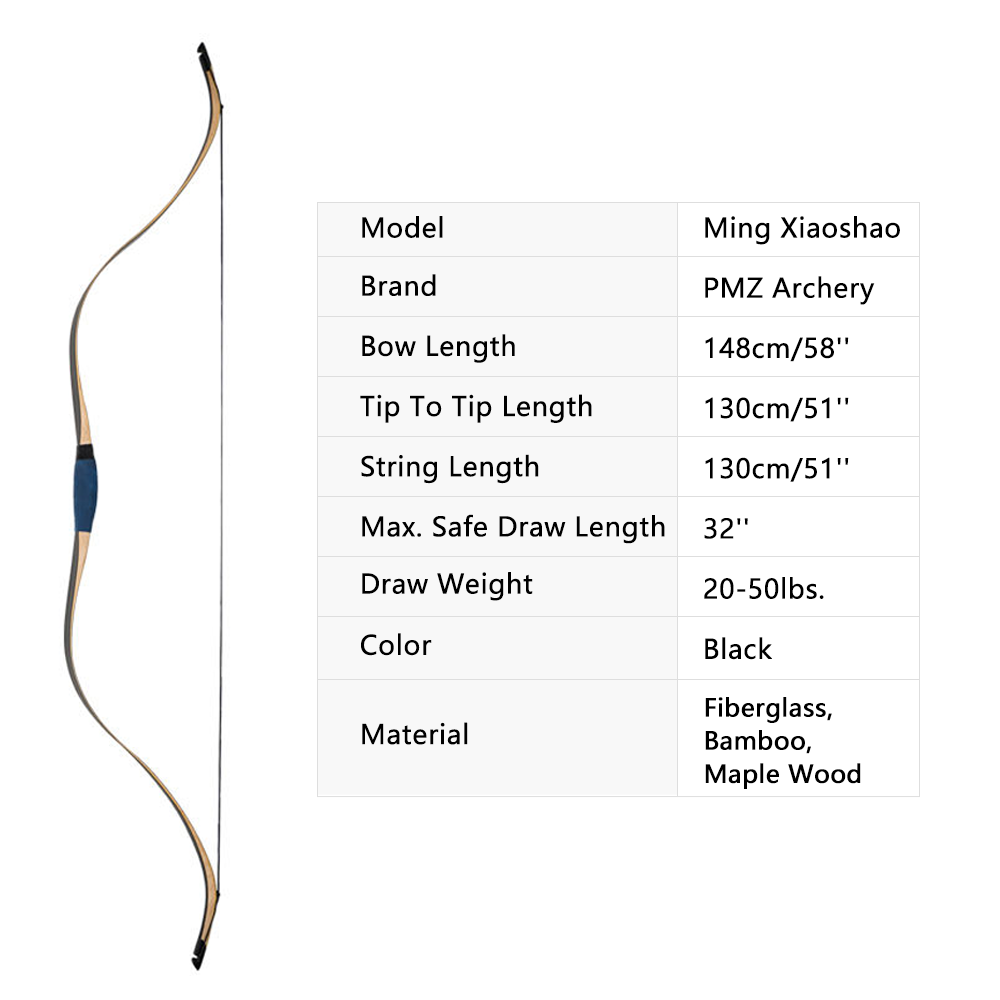 PMZ Archery 58" Traditional Long Bow Ming Xiaoshao Horse Bow Mongolian Recurve Bow